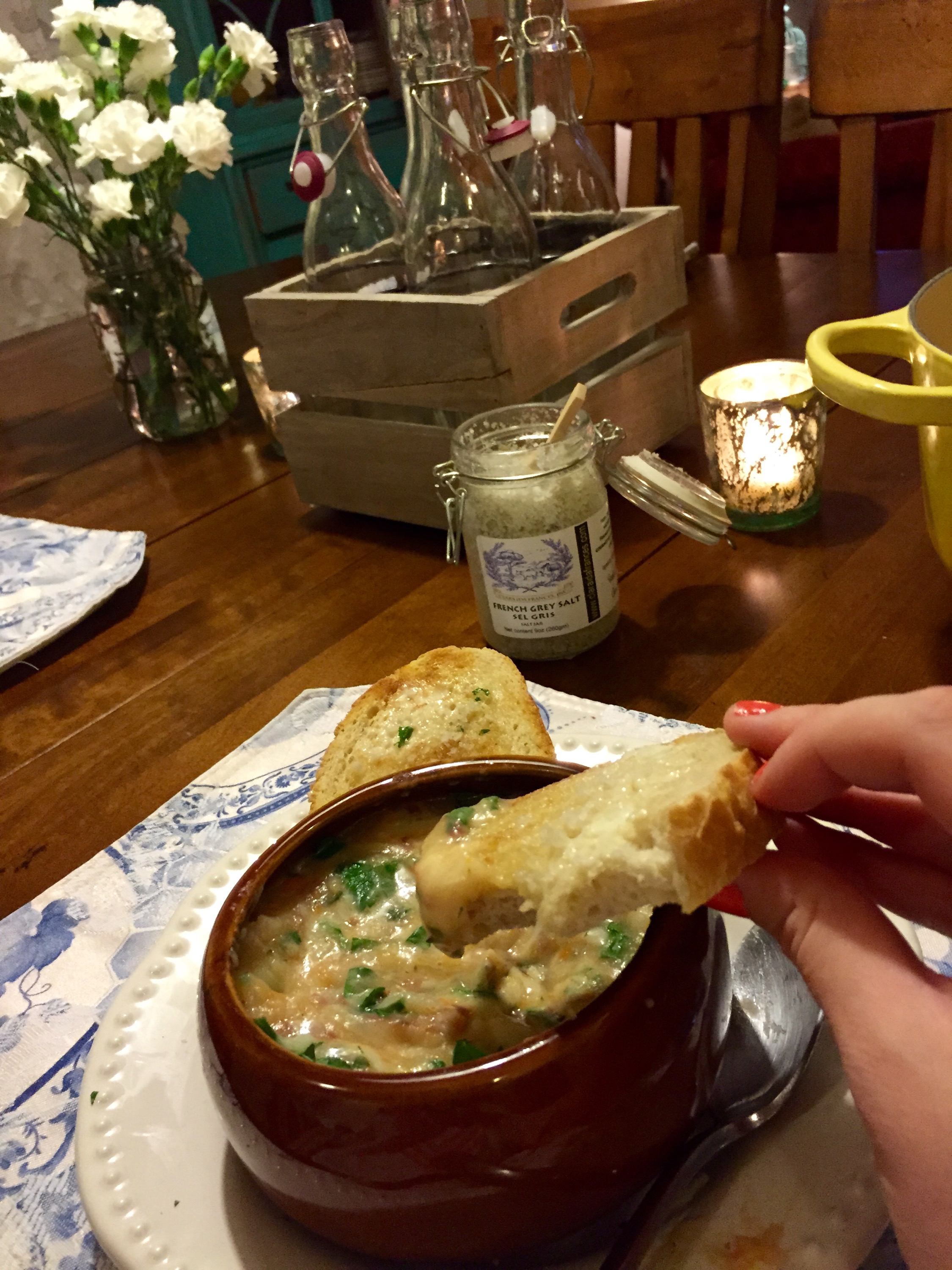 It was difficult to choose a favorite savory recipe. I cook most days and I only post my favorites here on The Rose Table. This soup is as beautiful as it is delicious! It’s so creamy and comforting but doesn’t have any cream so if you want to be good in January, make this soup. I certainly have posted much more glamorous recipes but at heart I’m just a potato-loving Irish gal and this really hits the spot.