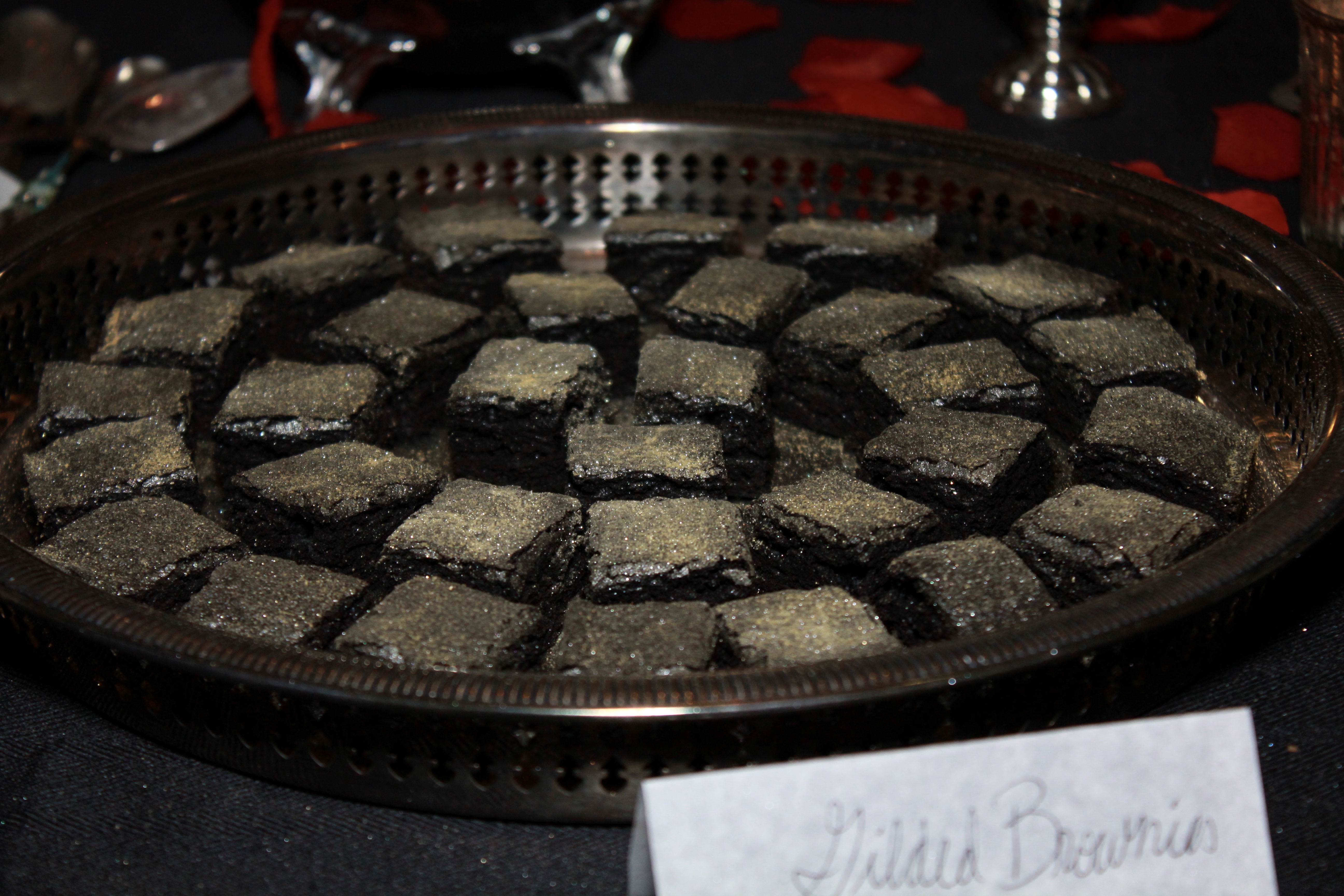 Is there be a chicer brownie than one topped with edible gold dust? You can find edible gold dust for very cheap at most craft or cooking stores or just order it here from Amazon. If you don’t have gold dust, this brownie recipe is still a delicious one to have one hand. I gilded them for my Phantom Masquerade party to up the fancy factor. These would also be perfect for an Academy Awards party or a New Year’s Eve party.