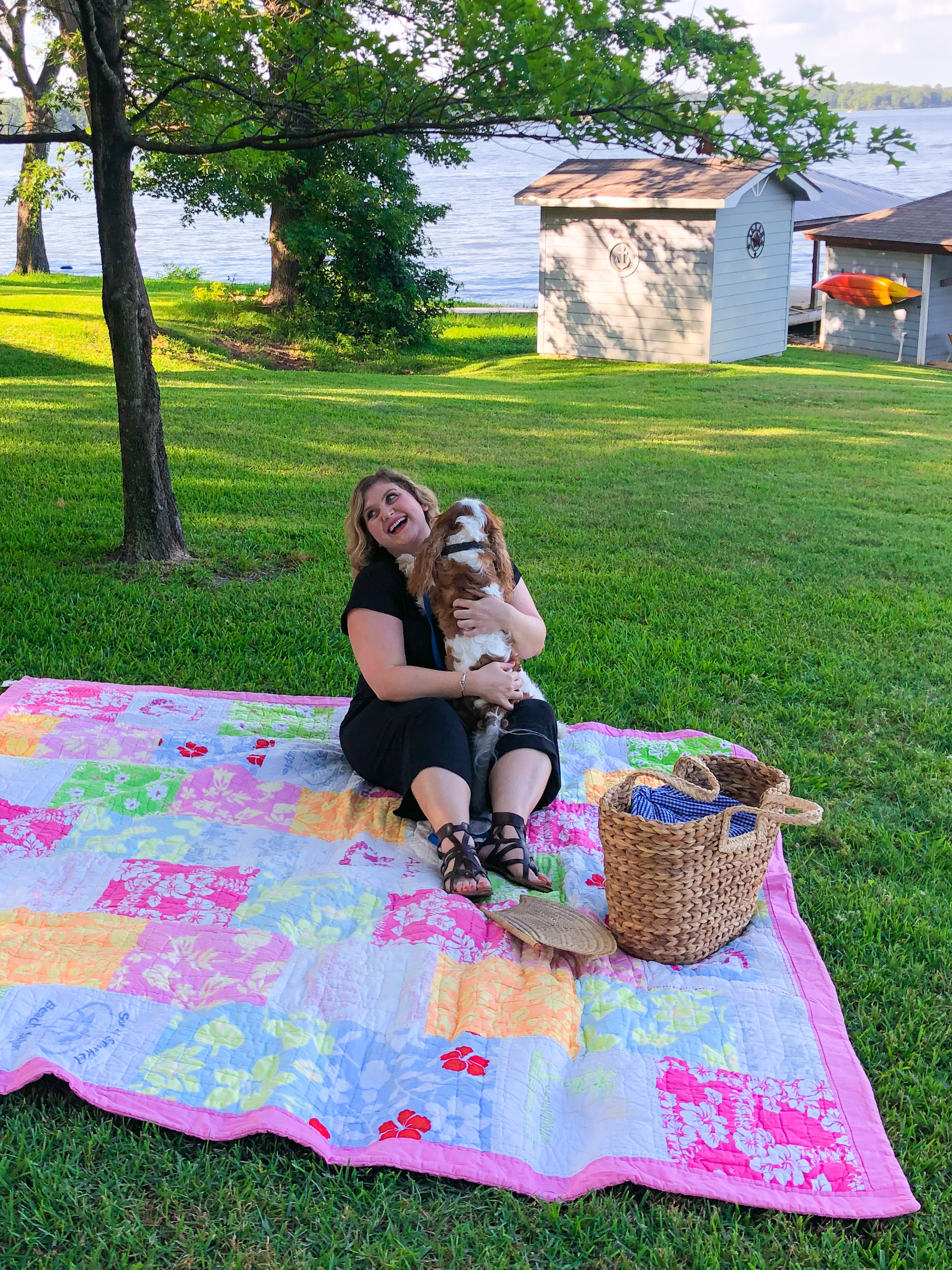 I enjoyed my picnic on the shady hill at my parents’ lake house, watching the boats, inner tubes, and wakeboards pass by. I carried everything down in my favorite new Draper James tote. I’m obsessed with this bag! It’s huge and sturdy but so chic, making it as functional as it is fashionable. I’m almost never seen without it now! I take it everywhere.